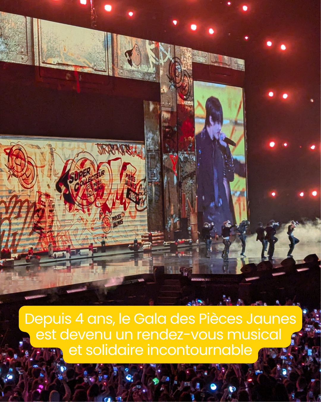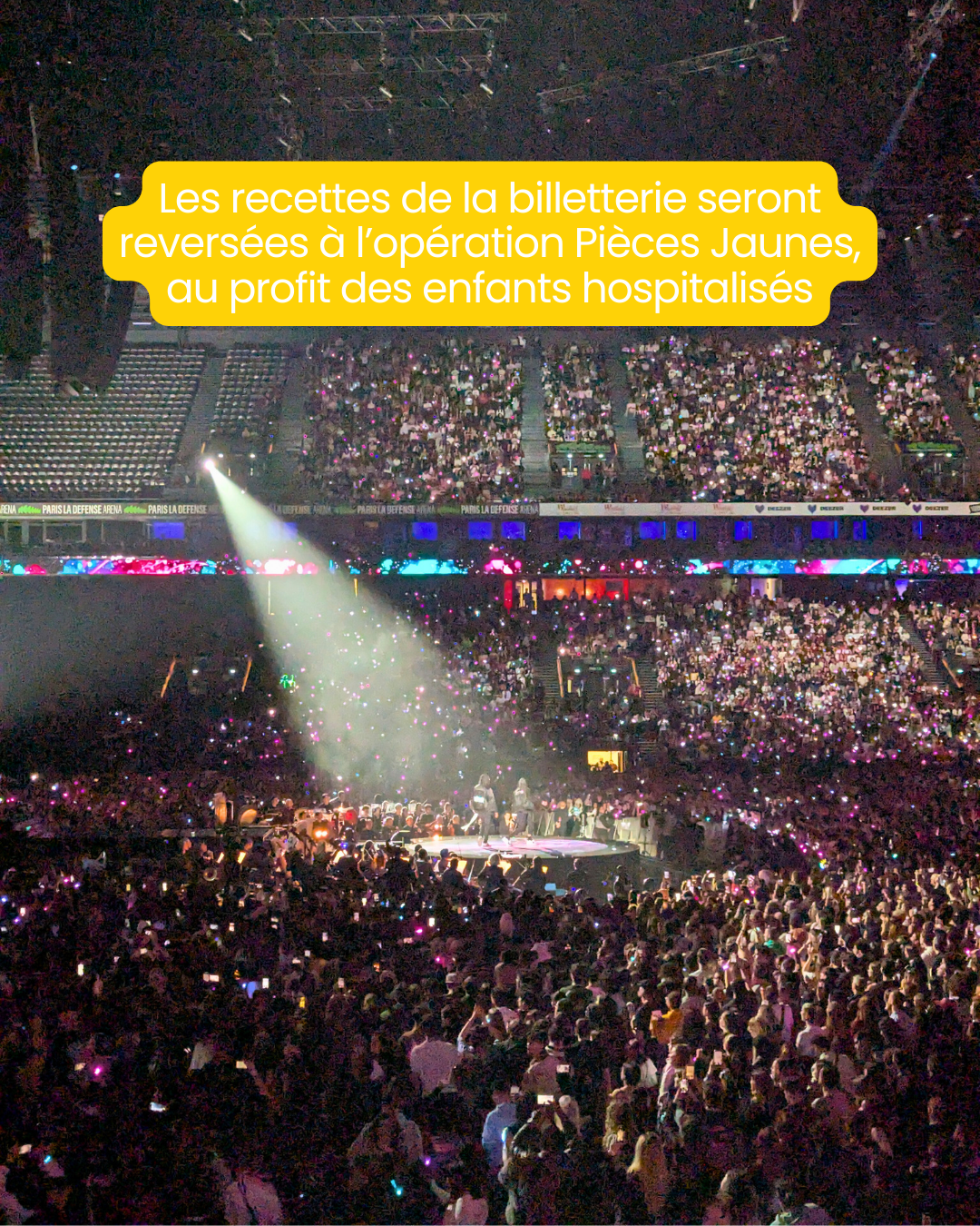 Le Gala des Pièces Jaunes a fait son grand retour le 22 janvier 2026 à Paris La Défense Arena, pour une soirée exceptionnelle placée sous le signe de la musique et de la solidarité. Organisé par la société de production Electron Libre (Groupe Mediawan) et France Télévisions, les recettes de la billetterie seront reversées à l’opération Pièces Jaunes au profit des enfants hospitalisés, et l’événement sera diffusé sur France 2 le 30 janvier.