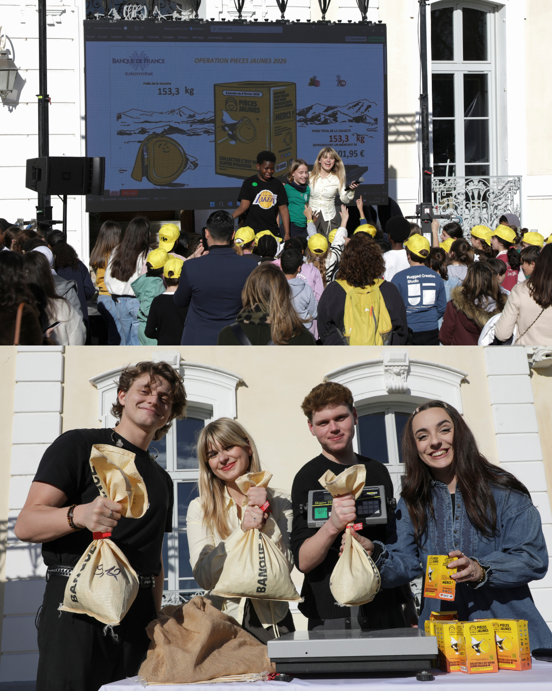 Cette journée de clôture, placée sous le signe du partage et de la solidarité, a été rythmée par de nombreux temps forts : visite du site, cross solidaire, animations proposées par les partenaires, pesée symbolique des tirelires sur le stand de la Banque de France, et un concert festif réunissant des artistes du collectif Génération Pièces Jaunes, autour de l’hymne Les p’tits soleils.