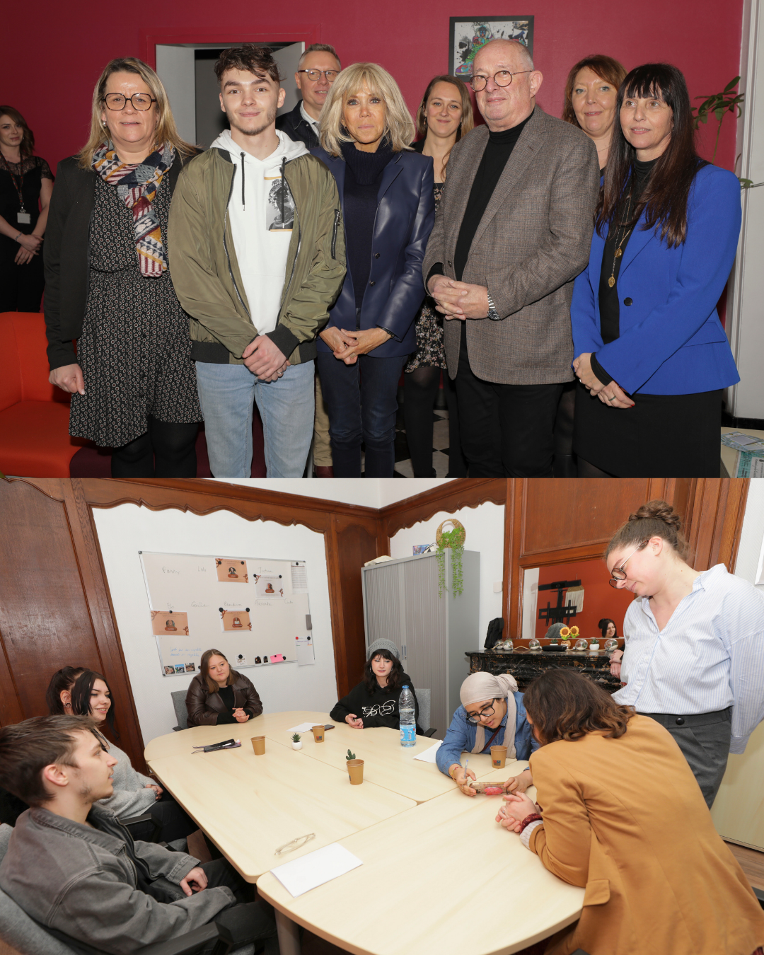 La visite de la MDA a été guidée par un jeune, qui a fait découvrir les lieux à l’équipe de la Fondation des Hôpitaux, menée par sa Présidente Brigitte Macron et sa Vice-Présidente Anne Barrère. Ensemble, ils ont parcouru les salles de travail et d’entretien, pensées comme des espaces accueillants, rassurants et favorisant la parole.